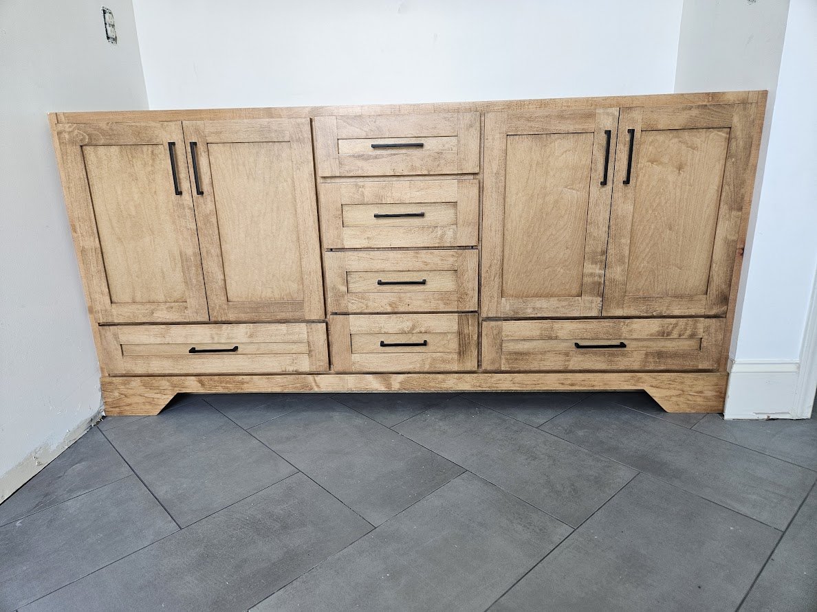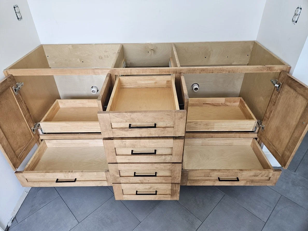 This client was in need of a custom way to hide a laundry hamper in their master vanity, while still maximizing storage. We designed and discussed plans to use faux drawers to hide the hamper storage with a custom fit to the hamper size they desired. We added extra pull out drawers for ease of use and functionality. The design and outcome was flawless!